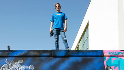 Born in Paris in 1975, the French-Swiss artist Nasty is one of the first graffiti artists in the French capital, having started painting walls and subways at the age of 13. It is today one of the most recognized in France. Virtuoso of calligraphy, he is invited to run his poetic writing on a wall of the school center of Jeanneret, Le Locle, on the theme of time, peculiar to the watchmaking activity of the city.